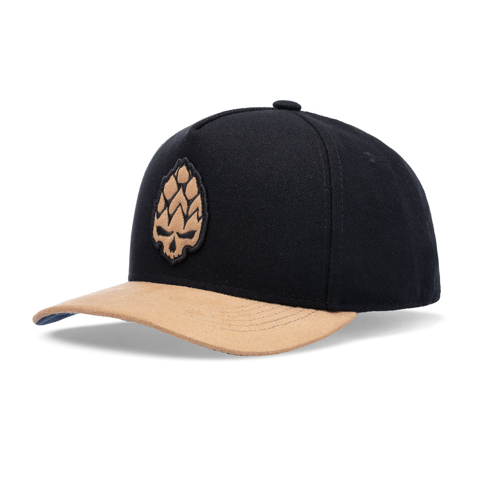 Boné Aba Curva Hopstrap Quer um modelo de boné preto casual, que ao mesmo tempo chama a atenção na medida certa? Eis o Hopstrap. Um boné strapback aba curva que tem uma combinação de cores extremamente simples e perfeita. O Boné Aba Curva Hopstrap traz o logotipo da Texo, a nossa querida Caveira em forma de lúpulo em um patch de camurça bege com contorno preto bordado.