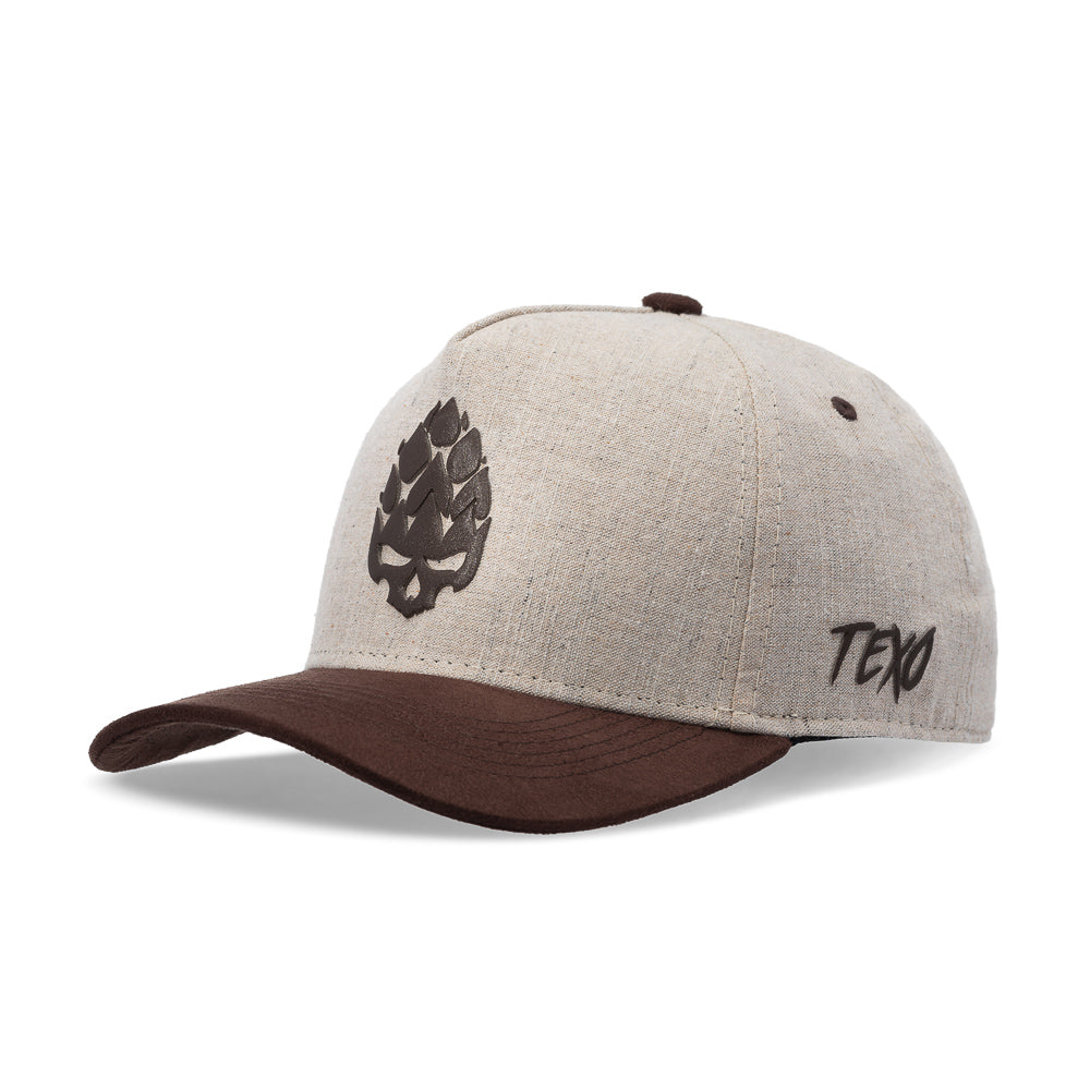 A coleção Linen é muito diversa, cada um com sua peculiaridade, unidos pela textura do tecido, mais grosso, que faz com que as linhas entrelaçadas fiquem aparentes. O Linen Palha tem uma textura clássica do linho e a cor bege. Contrastante a isso está a Hopskull contorno em silk marrom, bem como a aba e a logo da TEXO estilizada na lateral, de mesma cor. Na estampa interna temos a foto de um campo de Cevada (Hordeum vulgare).