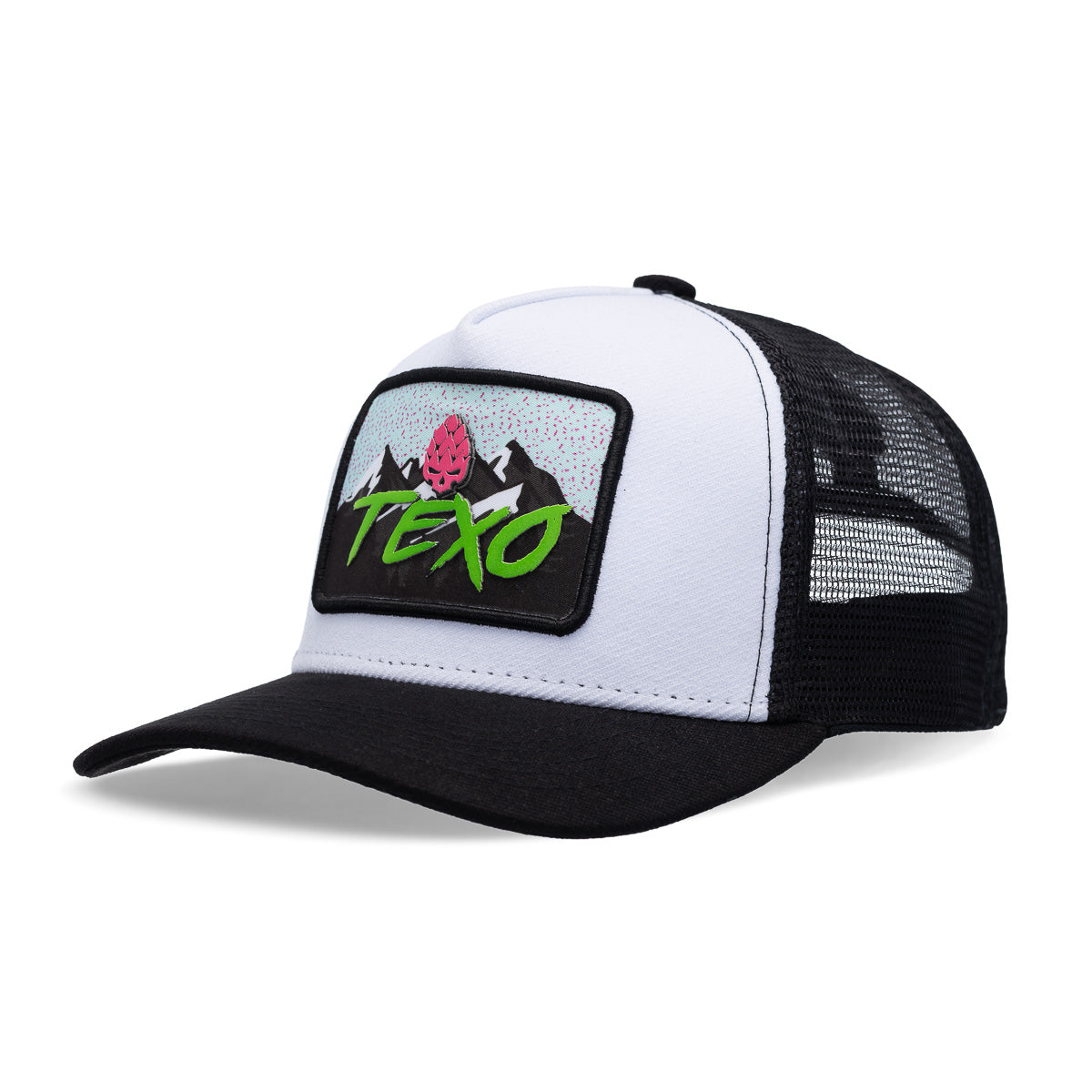 Com frontal em lantel branco marcante e tela preta em poliéster, esse boné traz um equilíbrio perfeito entre conforto, ventilação e presença. O patch destaca montanhas imponentes, nossa icônica Hopskull e a assinatura Texo em fonte estilizada, que grita liberdade e rebeldia.