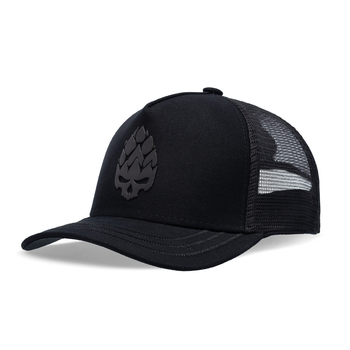 No centro de tudo, a presença sombria da Hopskull em silk preto. Nada de cores vibrantes – aqui, o destaque é o silêncio do preto absoluto, o mesmo das noites na estrada e dos riffs mais pesados.